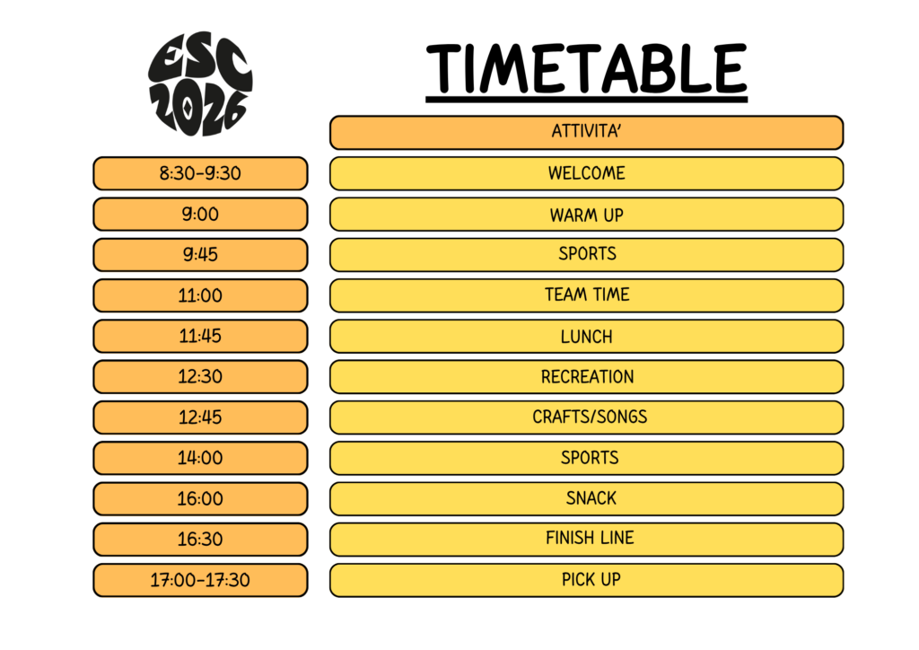 Grazie per aver scelto di iscrivere i vostri figli all’English Summer Camp 2026. Questo campo sportivo in inglese è organizzato da SINAI con il patrocinio del Comune di Fino Mornasco e in collaborazione con ACP Humanitarian Aid, Emmanuel C.E.P., Associazione Mano Tesa Per, Circolo Ricreativo Finese, G.S. Junior, Catering Cimadoro Gabriele e Associazione Scuola Famiglia. Siamo entusiasti di offrire ai partecipanti l’opportunità di imparare all’interno di un ambiente divertente e stimolante, con il supporto di istruttori madrelingua inglesi affiancati da animatori italiani.